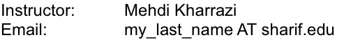 - HW 1: Available: 1404/8/12, Deadline: 1404/8/25, 11:59PM