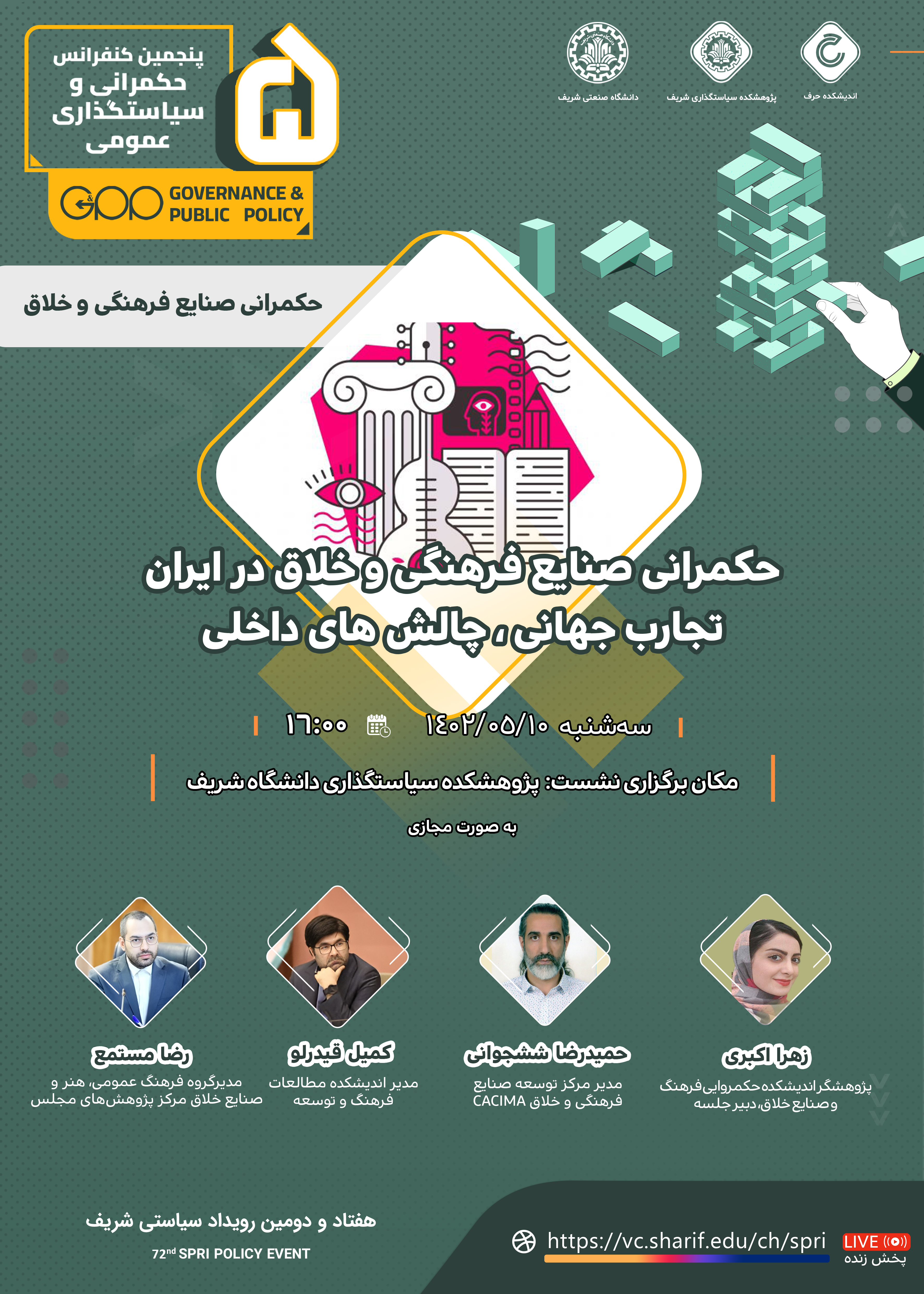 رویداد سیاستی مراکز وابسته : اندیشکده حکمروایی فرهنگ و صنایع خلاق حوزه تخصصی : صنایع خلاق سیاست گذاری فرهنگی دیپلماسی فرهنگی...