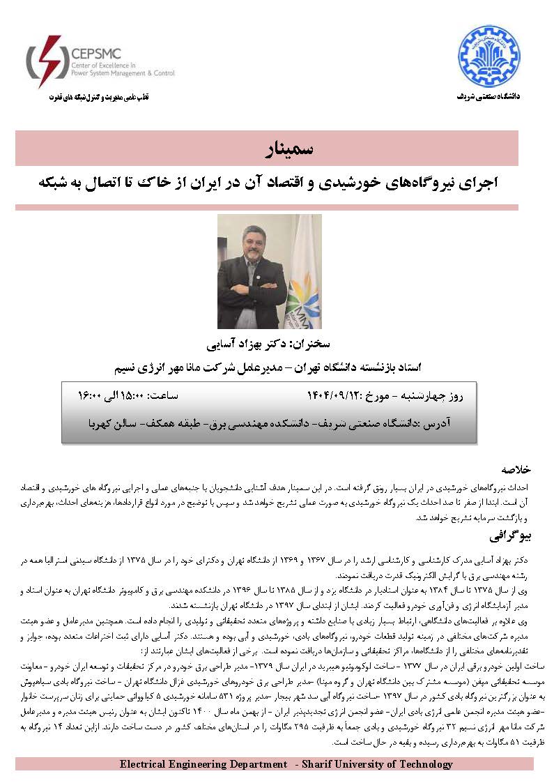سمینار : اجرای نیروگاه های خورشیدی و اقتصاد آن در ایران از خاک تا اتصال به شبکه