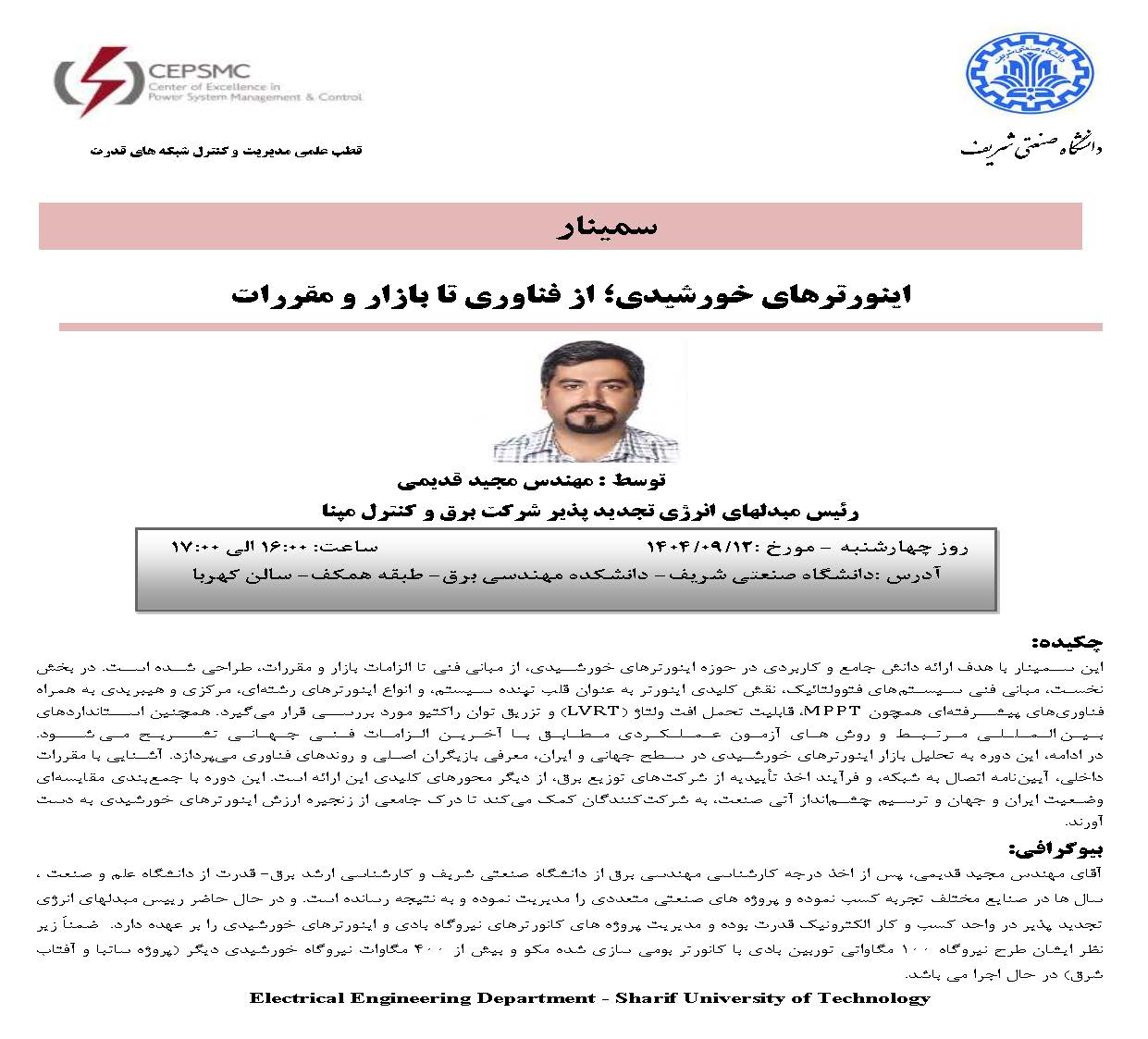 سمینار: اینورترهای خورشیدی؛ از فناوری تا بازار و مقررات