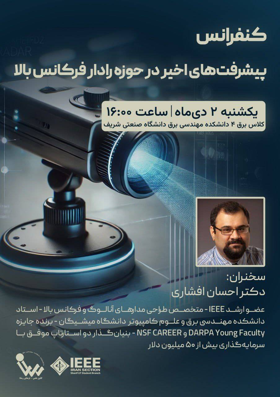 " کنفرانس پیشرفتهای اخیر در حوزه رادار فرکانس بالا"، توسط دکتر احسان افشاری، استاد دانشکده...