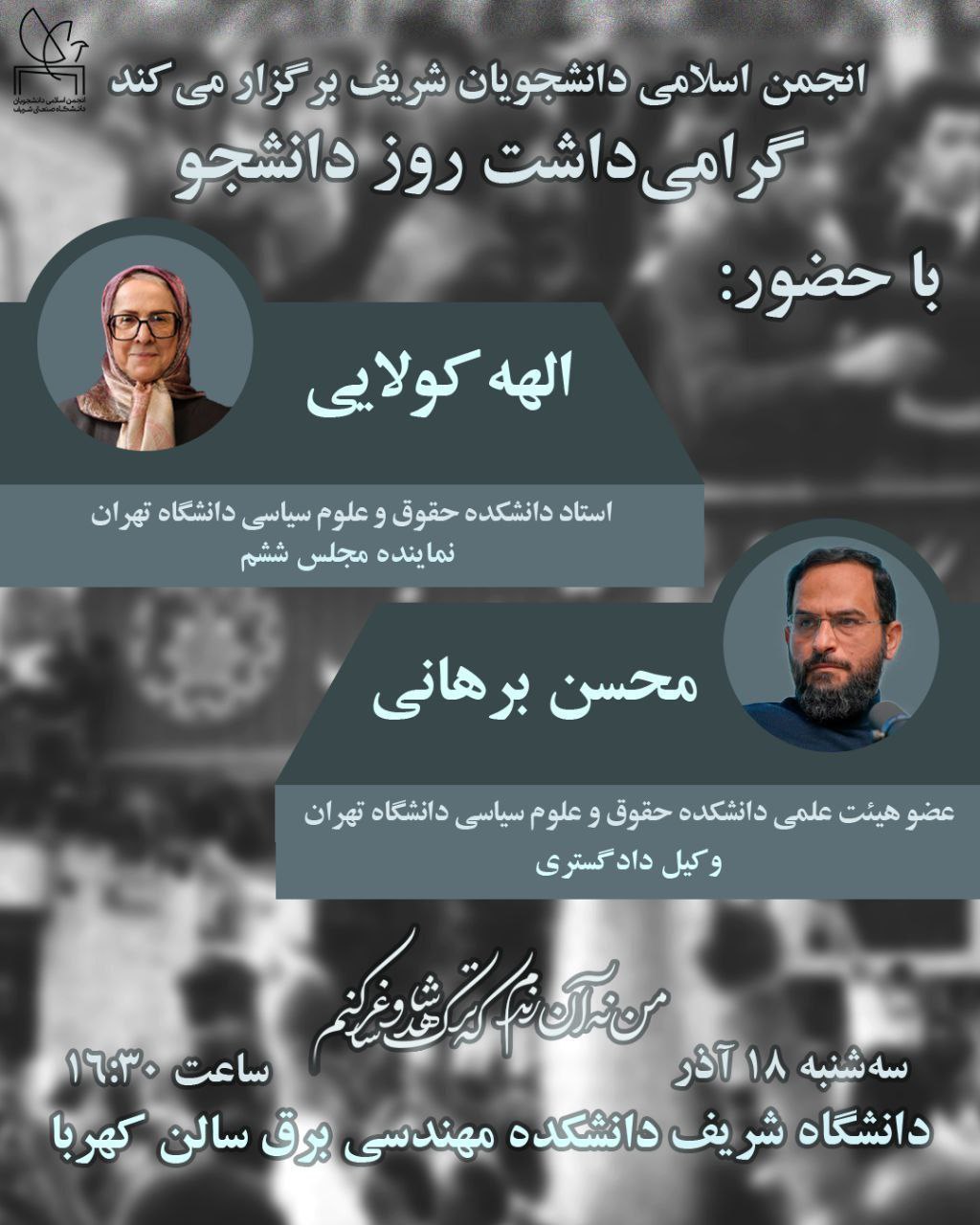 ➖ انجمن اسلامی دانشجویان دانشگاه صنعتی شریف برگزار میکند: 🔸 بهمناسبت شانزدهم آذر، روز دانشجو ...