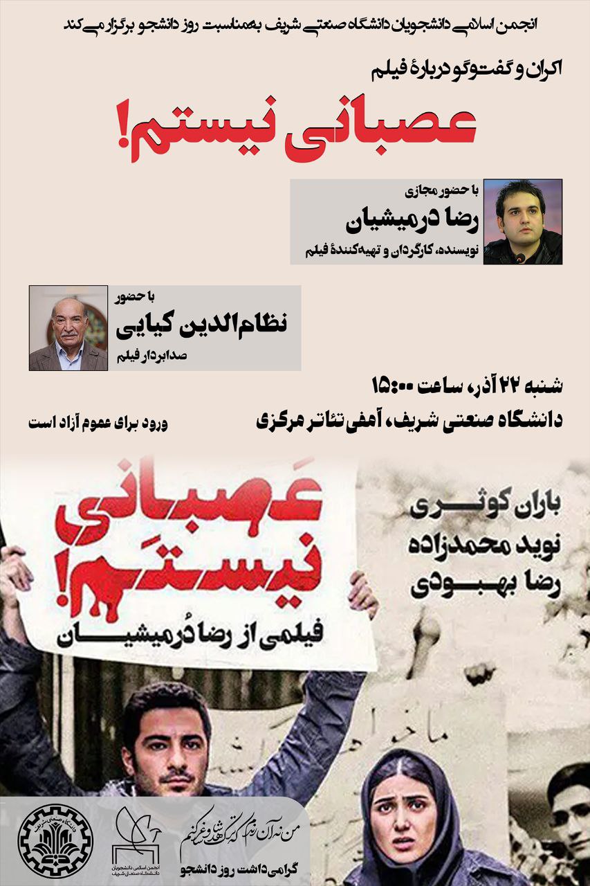 اکران و گفتوگو دربارۀ فیلم «عصبانی نیستم!» | معاونت فرهنگی اجتماعی دانشگاه صنعتی شریف