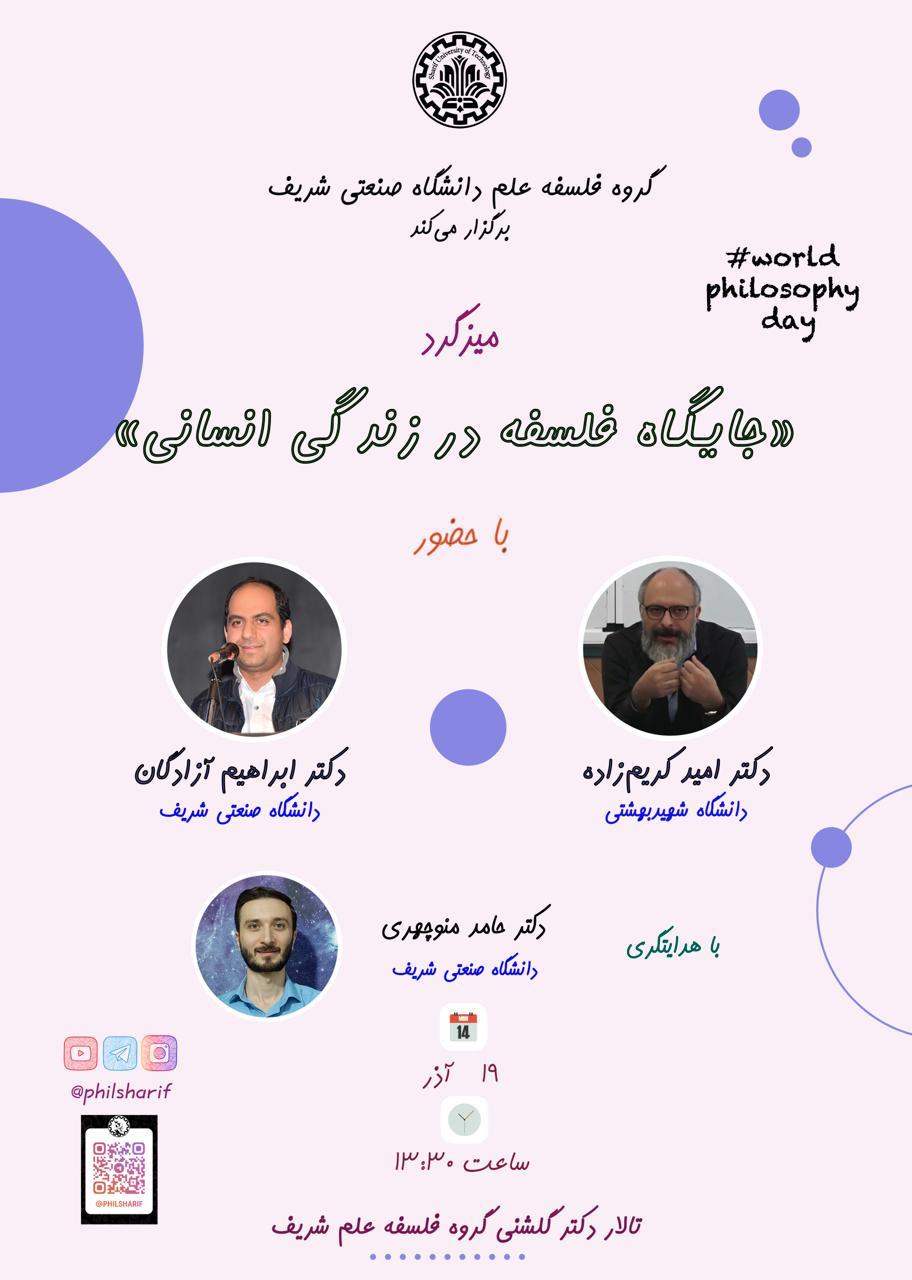 ◆ میزگرد «جایگاه فلسفه در زندگی انسانی» ◆ با حضور: دکتر ابراهیم آزادگان(دانشگاه صنعتی شریف) دکتر...