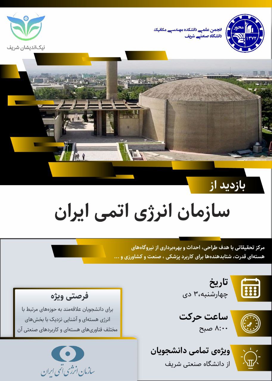 🆕 انجمن علمی محور با همکاری موسسهی نیکاندیشان شریف برگزار میکند: 6️⃣بازدید ششم: سازمان انرژی...