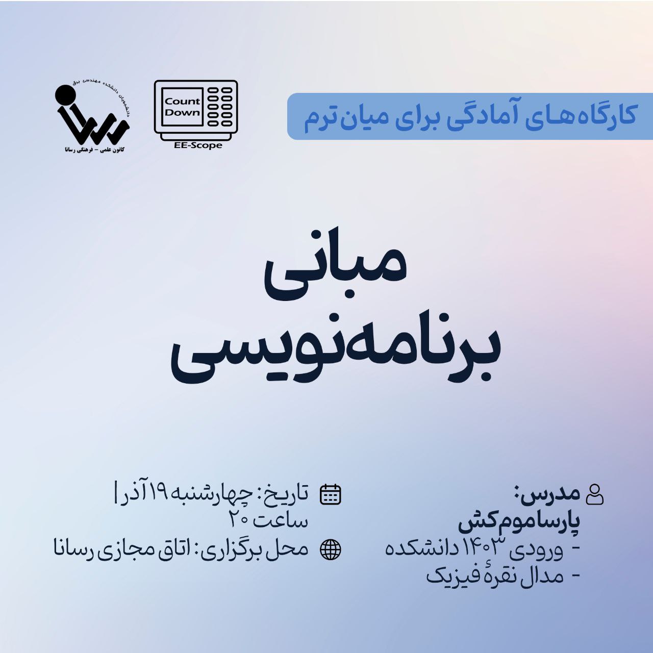 🔨 کارگاه جمعبندی میانترم مبانی برنامهنویسی ⚡️ سلسله کارگاههای Count Down 👤 پارسا مومکش،...