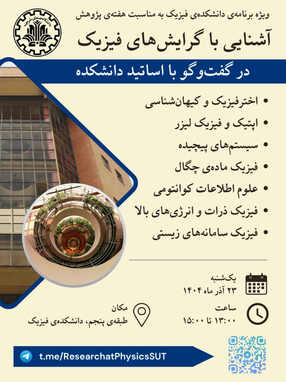 ویژه برنامهی آشنایی با گرایشهای فیزیک | معاونت فرهنگی اجتماعی دانشگاه صنعتی شریف