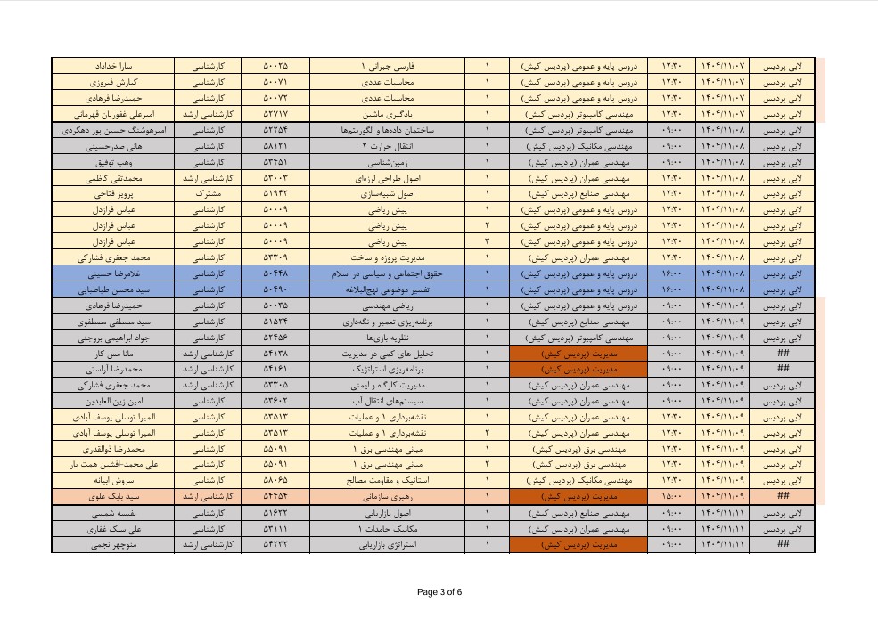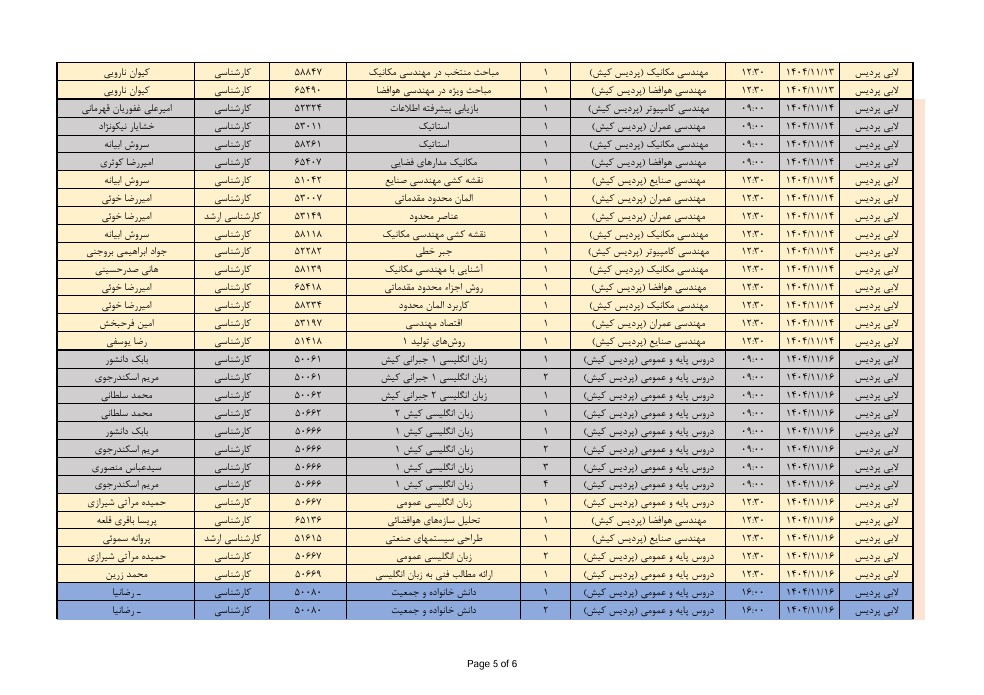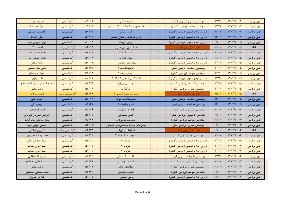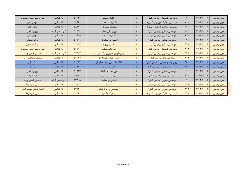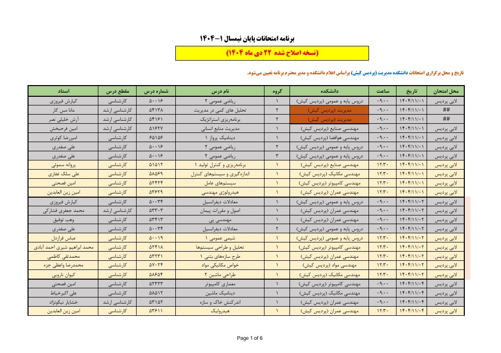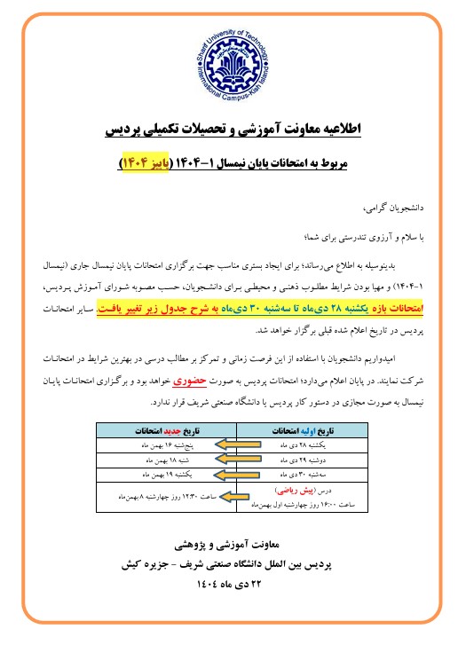 *اصلاحیه* برنامه امتحانات پایان نیمسال 1-1404 پردیس