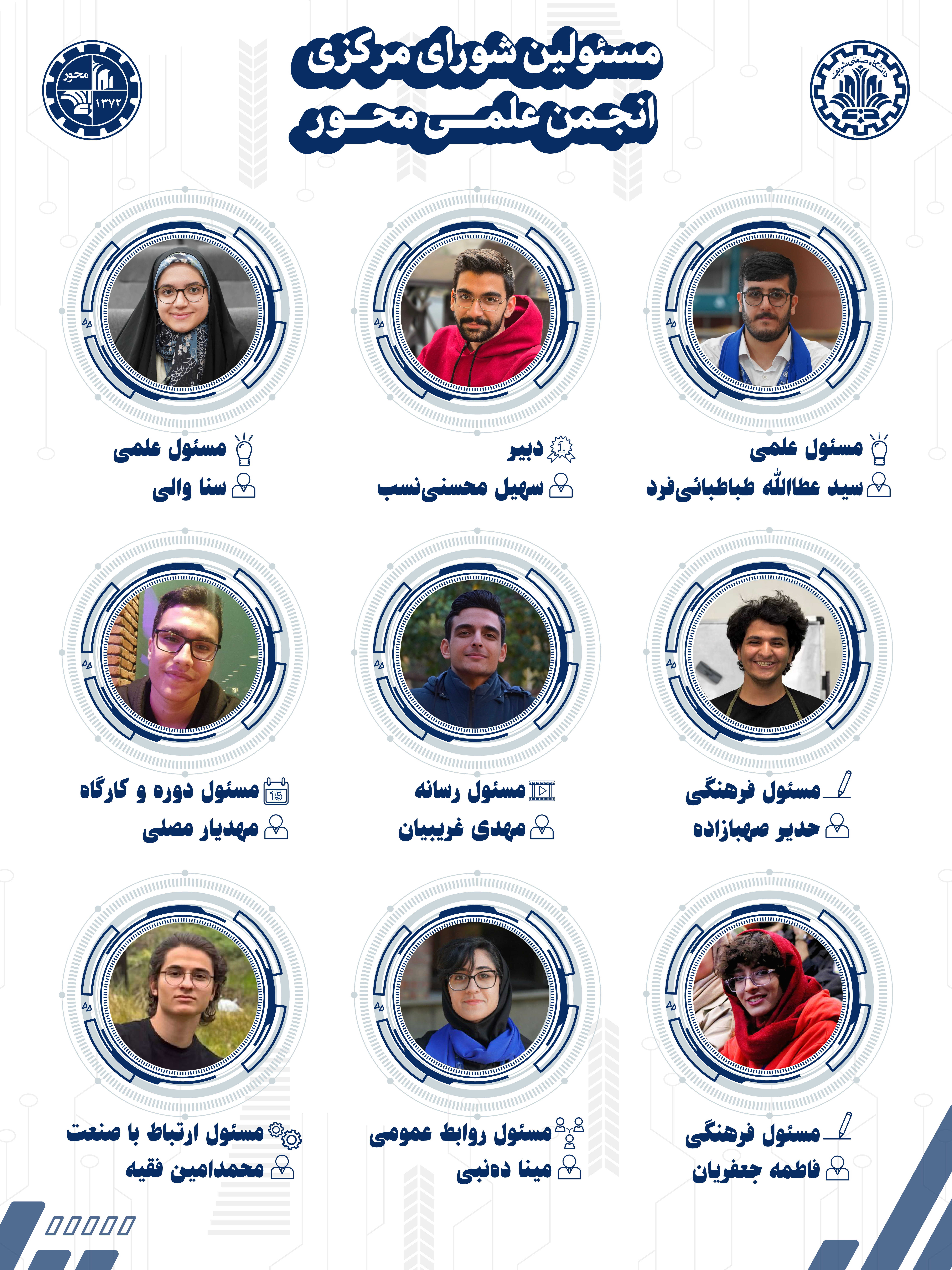 مسئولیت اعضای محور شامل دبیر و مسئولین فرهنگی، علمی، رسانه، دوره، مسابقه و مالی-اداری است که اموری در زمینه مدیریت، تدوین نشریه، برگزاری جلسات علمی، تبلیغات، برگزاری دوره و مسابقه و... را بر عهده دارند.