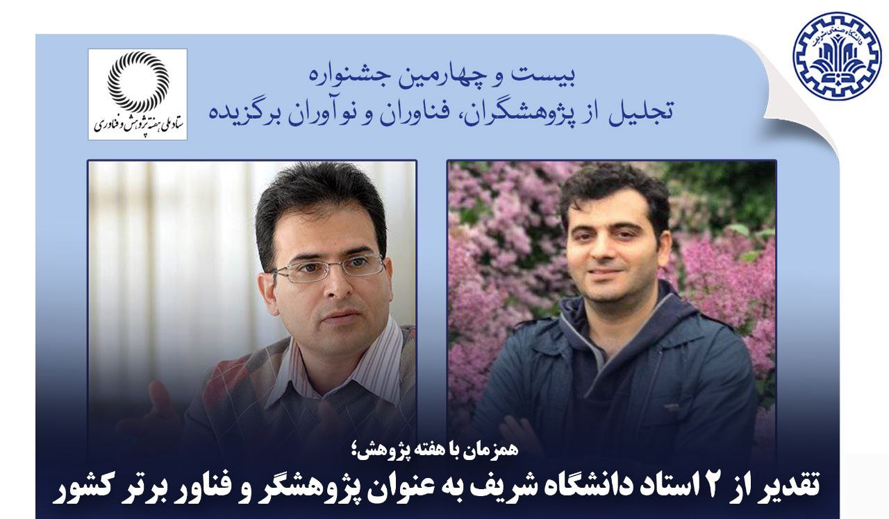در بیست‌و چهارمین جشنواره معرفی پژوهشگران و فناوران برتر کشور با حضور وزیر علوم، از دو عضو هیئت علمی دانشگاه شریف؛ دکتر ایمان غلامپور به‌عنوان فناور برتر و دکتر حمیدرضا مداح حسینی به‌عنوان پژوهشگر برتر تجلیل شد.