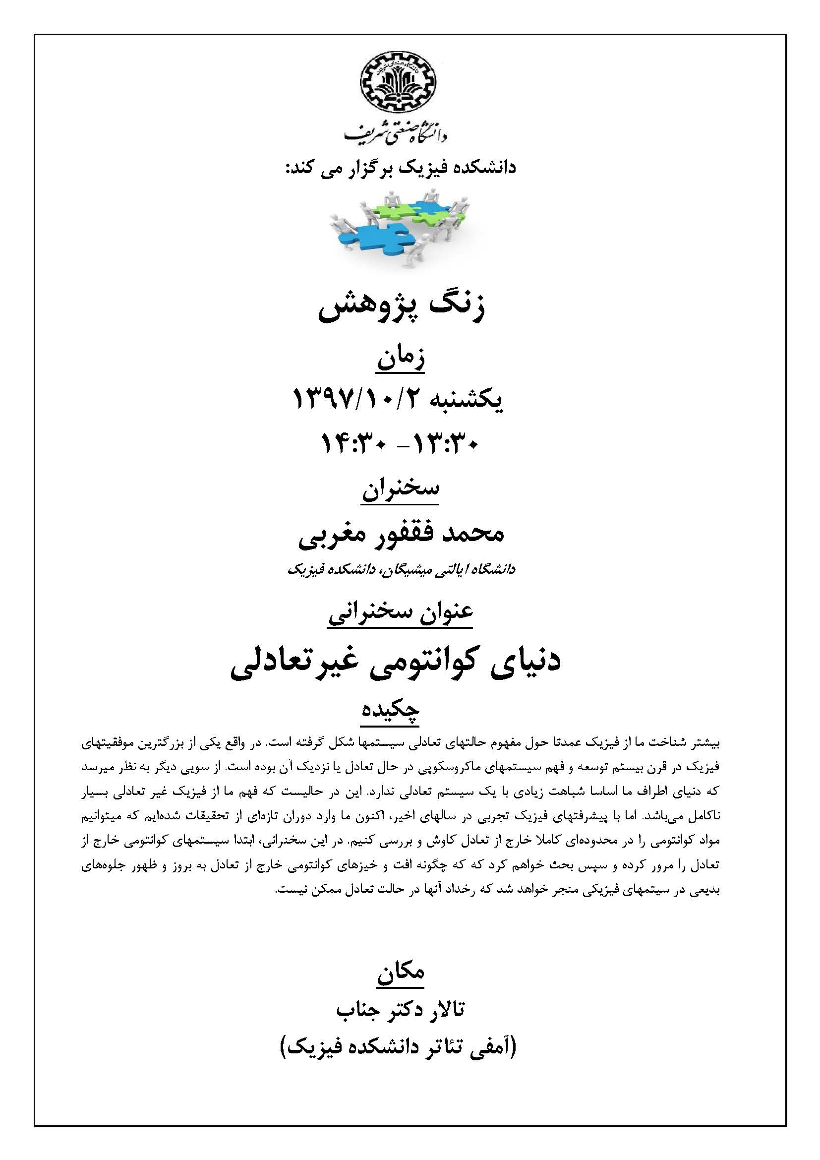 دنیای کوانتومی غیرتعادلی محمد فقفور مغربی / دانشگاه ایالتی میشیگان
