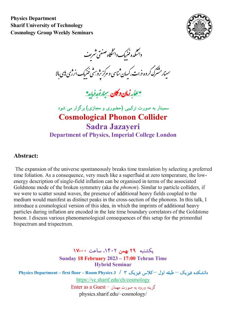 سمینار مشترک گروه ذرات، کیهانشناسی و مرکز پژوهشی فیزیک انرژیهای بالا