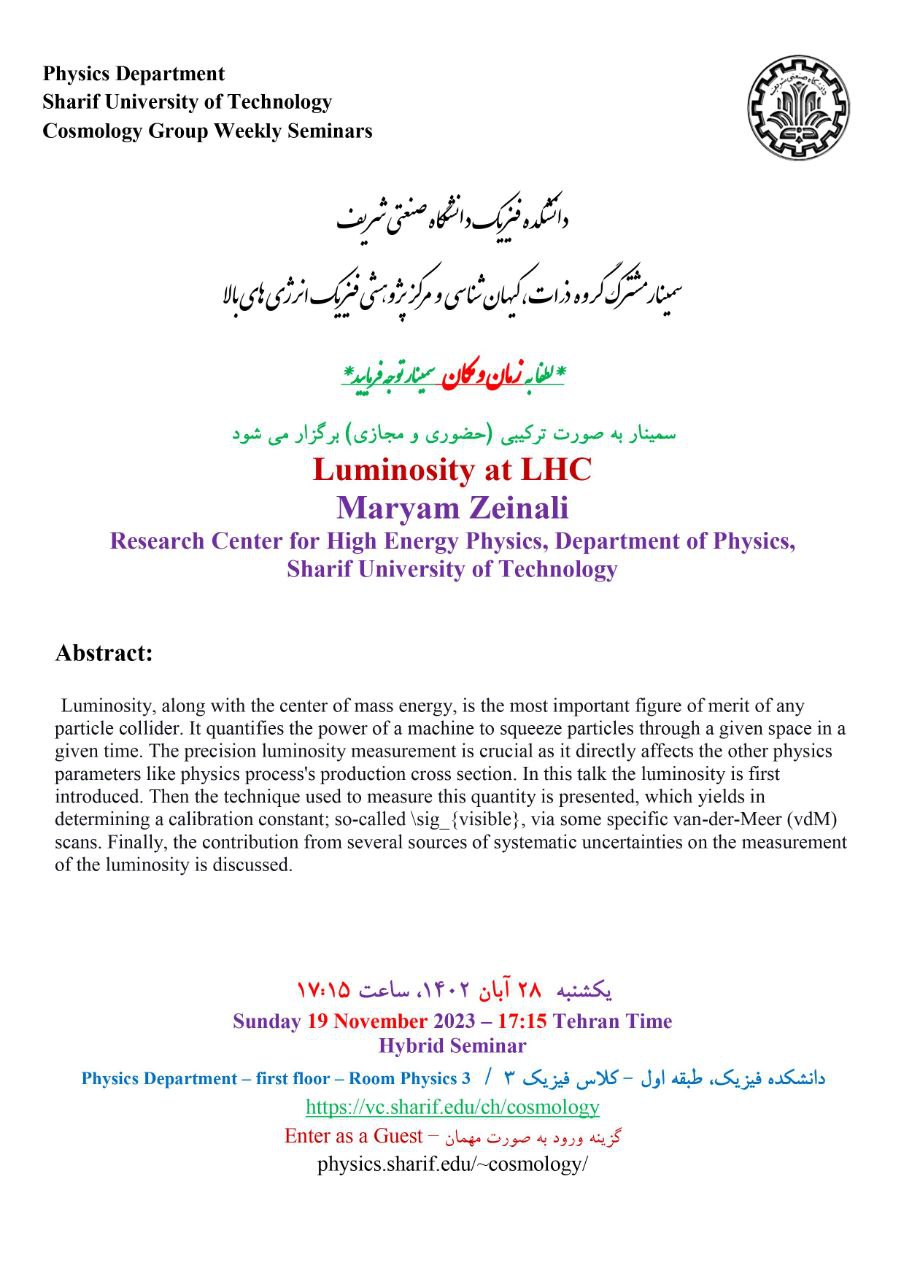 سمینار مشترک گروه ذرات، کیهان شناسی و مرکز پژوهشی فیزیک انرژیهای بالا