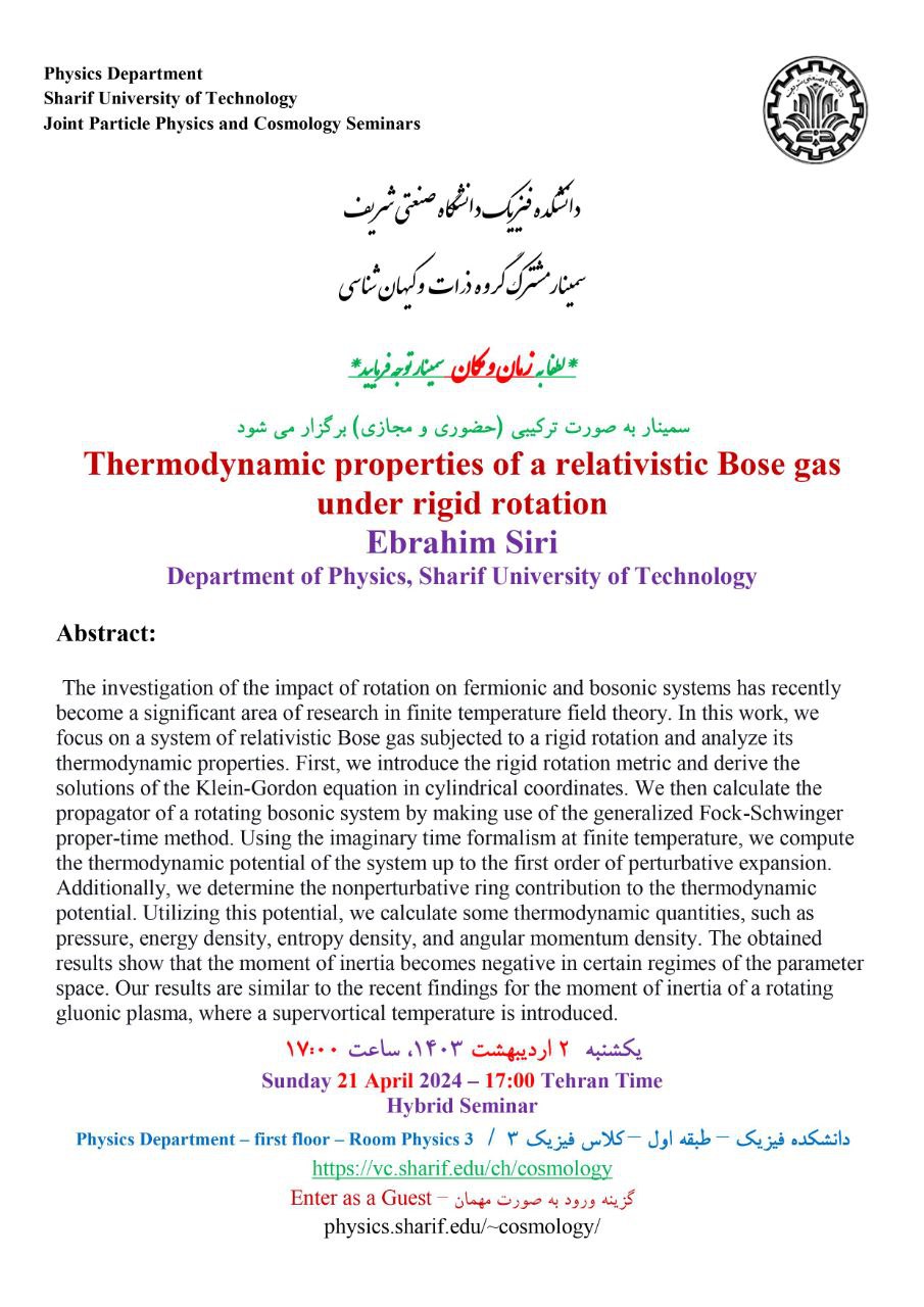 سمینار مشترک گروه ذرات و کیهان شناسی