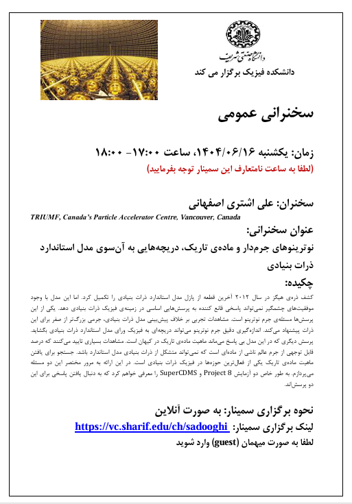 نوترینوهای جرم دار و ماده ی تاریک، دریچه هایی به آن سوی مدل استاندارد ذرات بنیادی