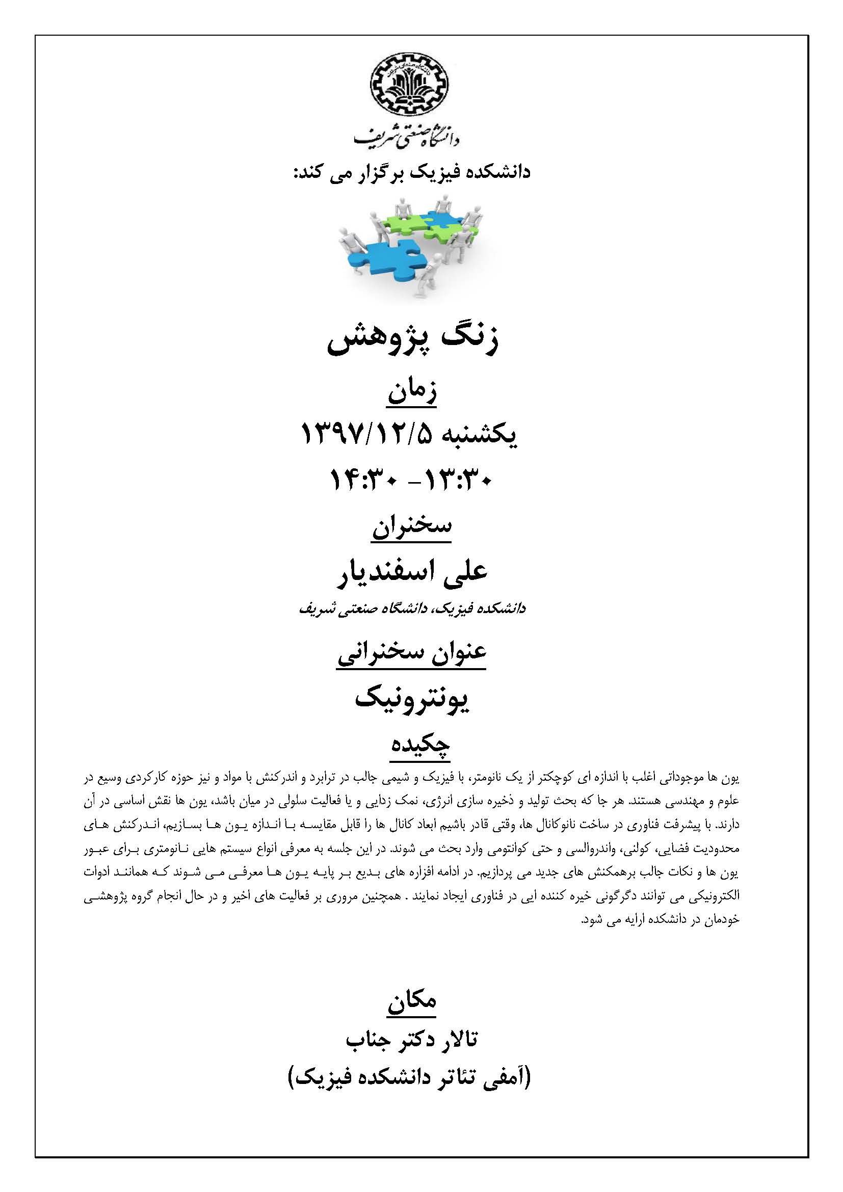 دکتر علی اسفندیار، دانشکده فیزیک، دانشگاه صنعتی شریف