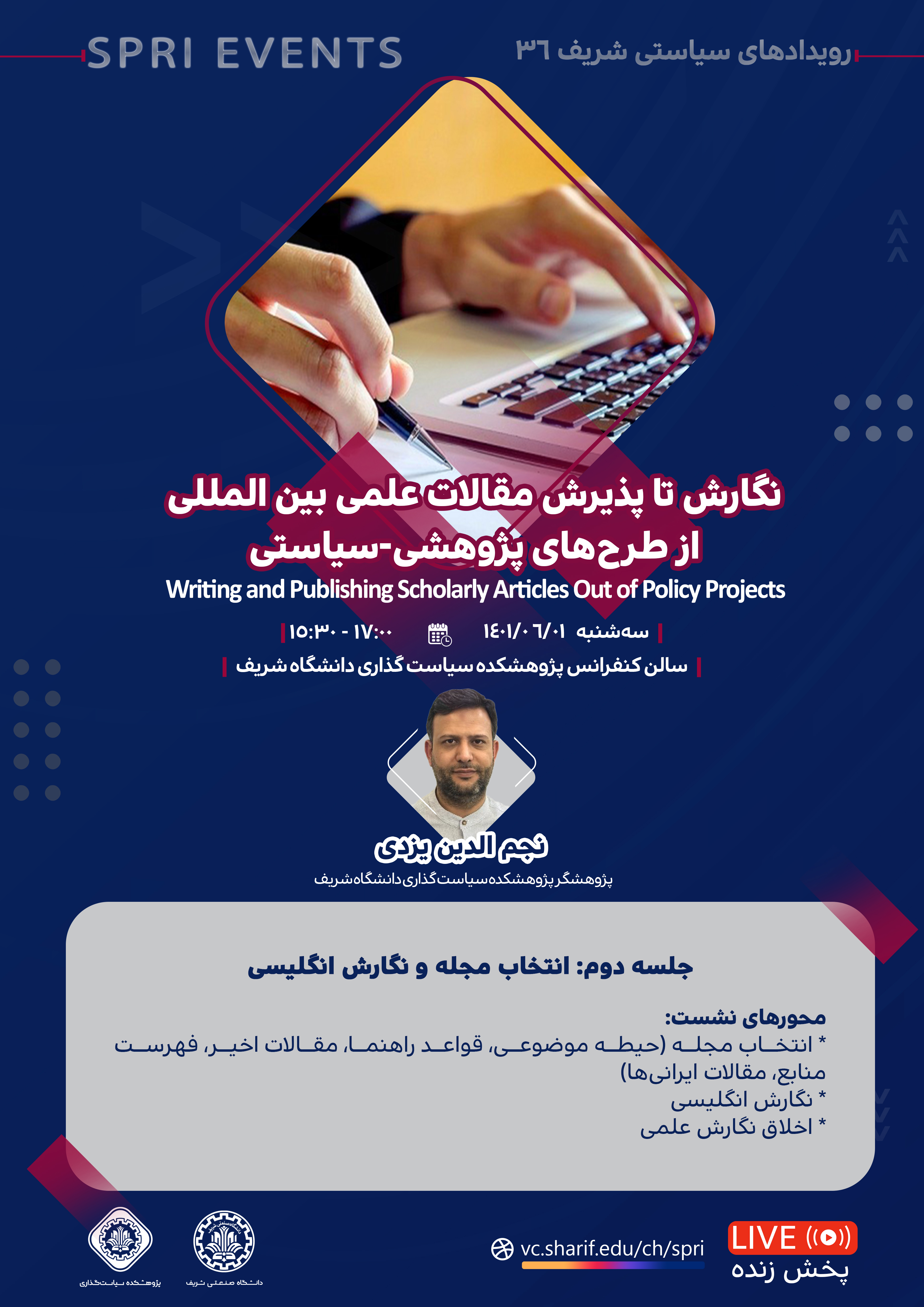 نگارش تا پذیرش مقالات علمی بین المللی از طرحهای پژوهشی-سیاستی نگارش تا پذیرش مقالات علمی بین المللی از طرحهای پژوهشی-سیاستی Writing-And-Publishing-Scholarly-Articles-Out-Of-Policy-Projects رویداد...
