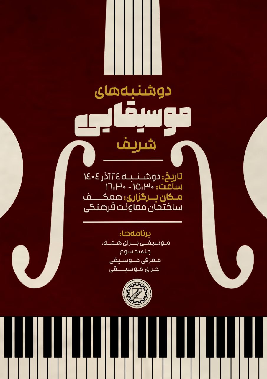 سلام به همگی.😊👋 جلسهی سوم دوشنبههای موسیقایی شریف این هفته برگزار میشه. از همتون دعوت میکنیم...