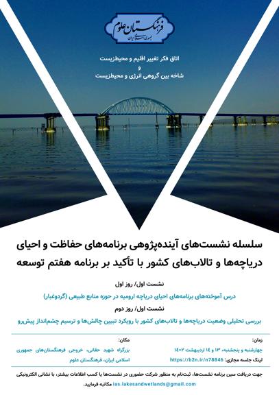 سلسله نشست های آینده پژوهی برنامه حفاظت و احیای دریاچه ها و تالاب ها کشور با تاکید بر برنامه توسعه هفتم در 13 و 14 اردیبهشت ماه...