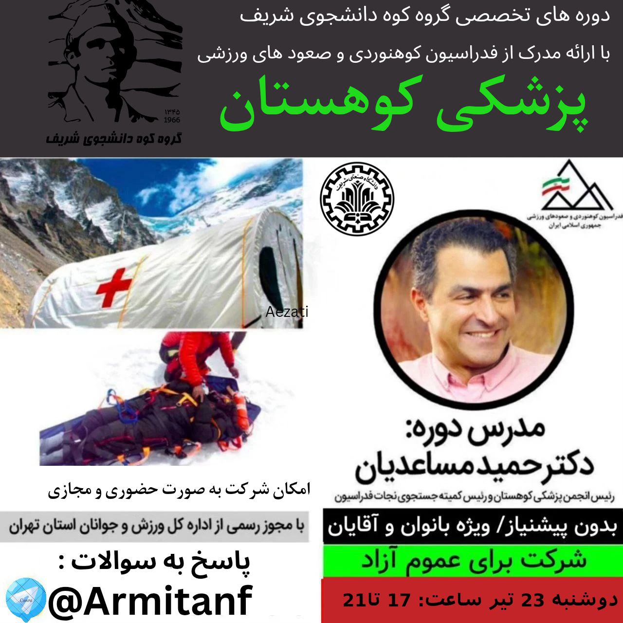 دوره پزشکی کوهستان | معاونت فرهنگی اجتماعی دانشگاه صنعتی شریف