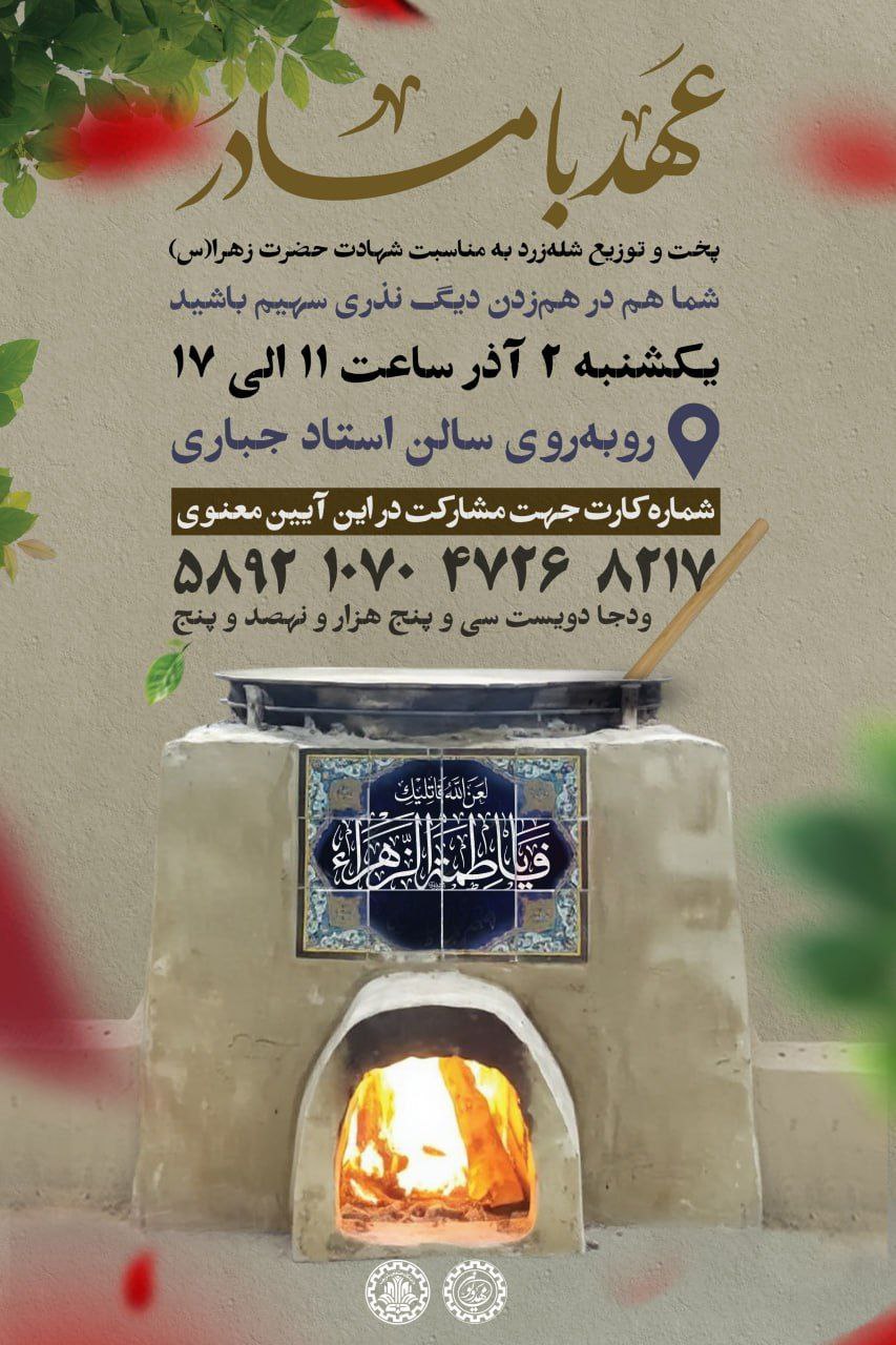 🟢 #موکب #فاطمیه 🏴 پخت و توزیع شلهزرد به مناسبت شهادت حضرت زهرا(س) 📆 یکشنبه ۲ آذر 🕰 ساعت...