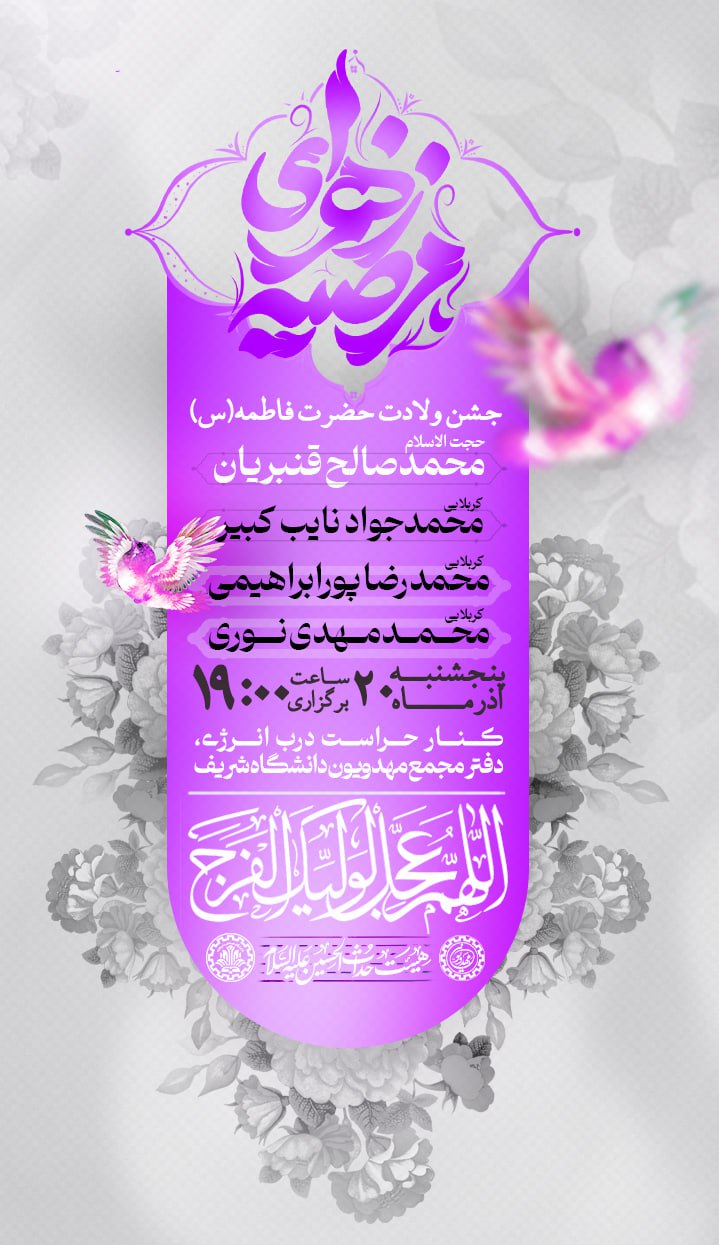 اطلاعیه مجلس ولادت حضرت زهرا(س) | معاونت فرهنگی اجتماعی دانشگاه صنعتی شریف
