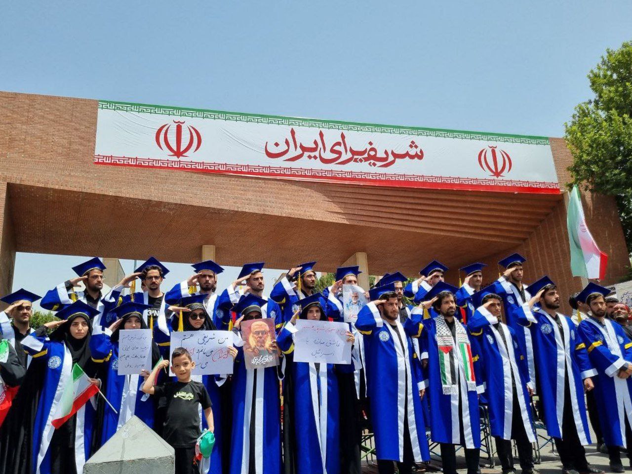 «ایستاده به احترام شهیدان» 🔻 ادای احترام جمعی از دانشجویان دانشگاه صنعتی شریف به شهدای جنگ...