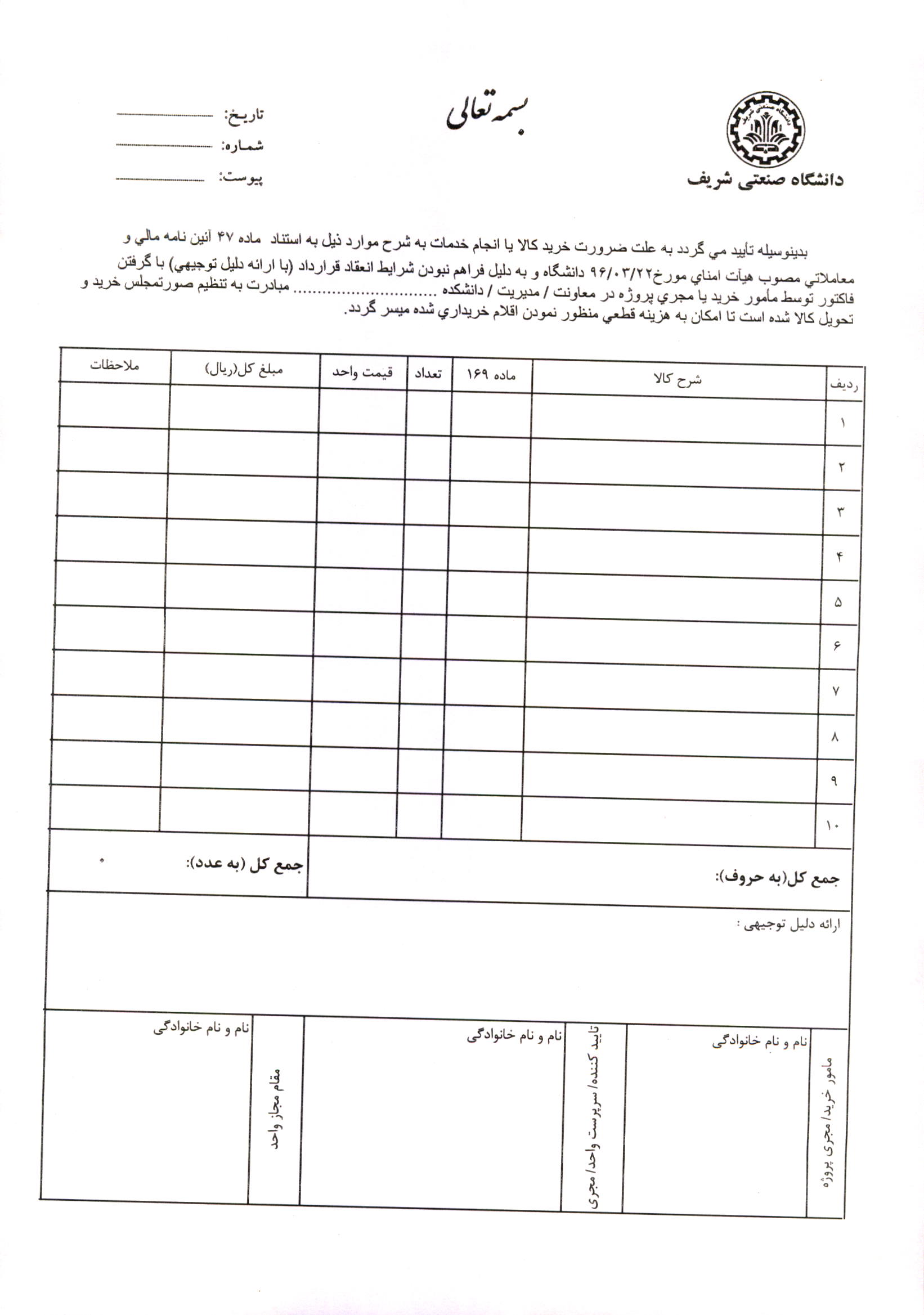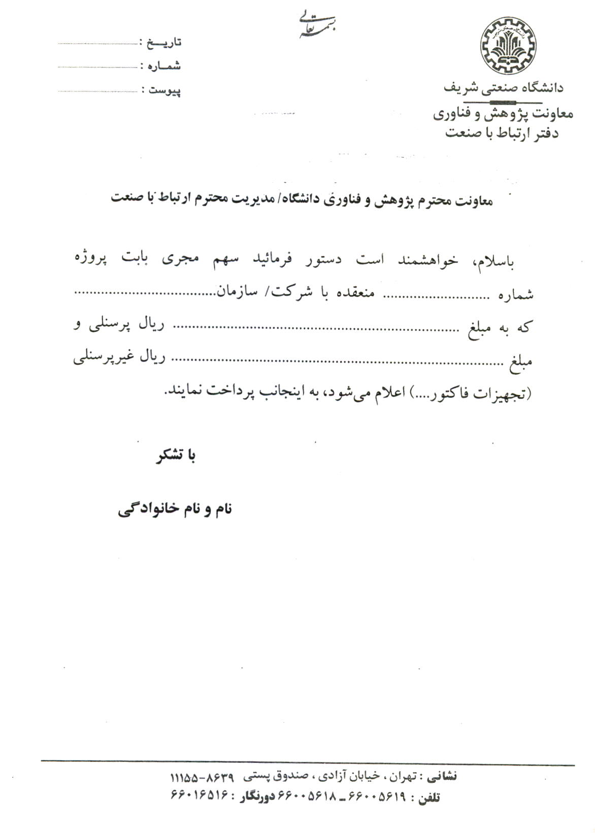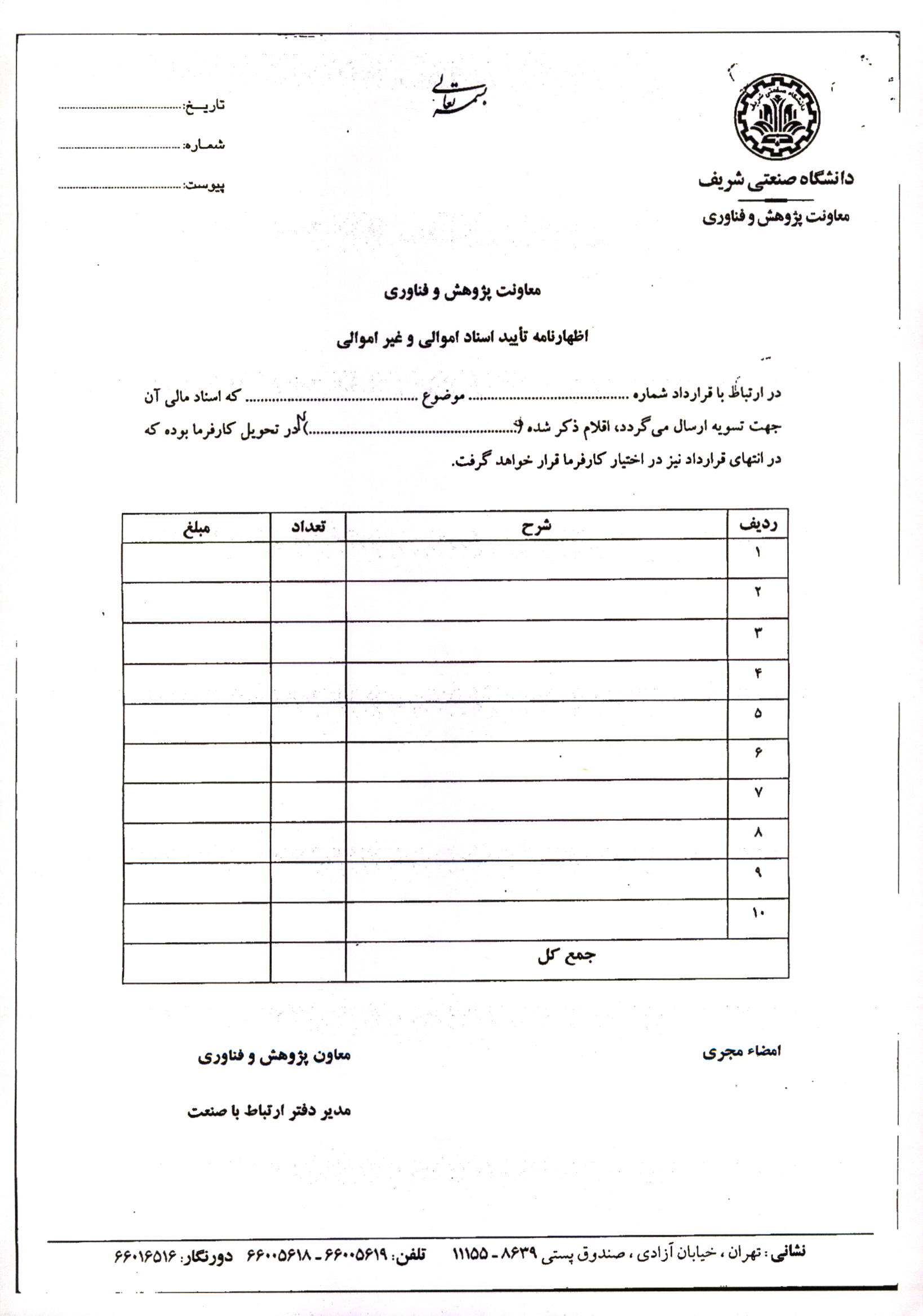 فرم مشخصات دانشگاه صنعتی شریف - معاونت پژوهش و فناوری