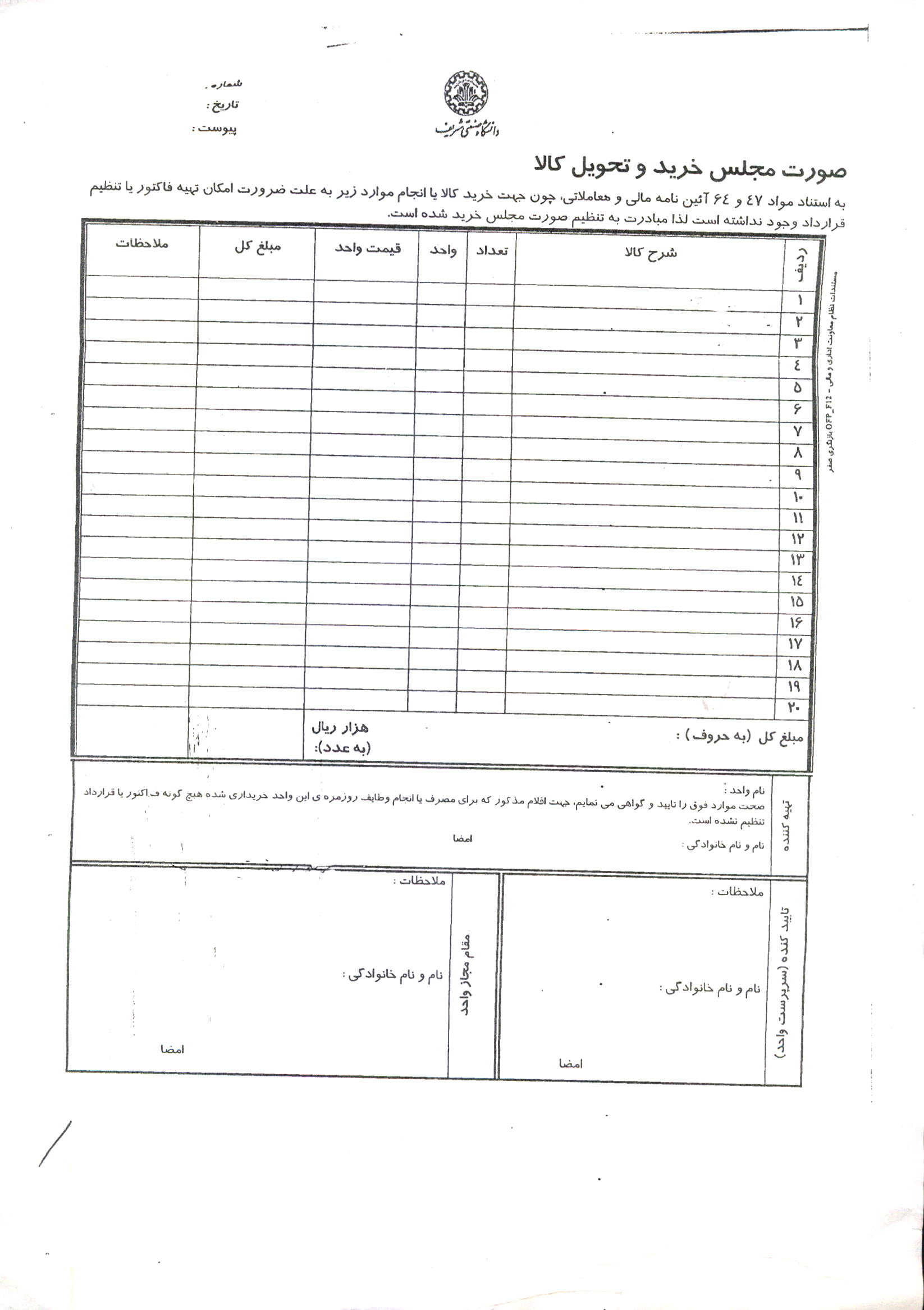 صورت مجلس خريد و تحويل كالا - عادی