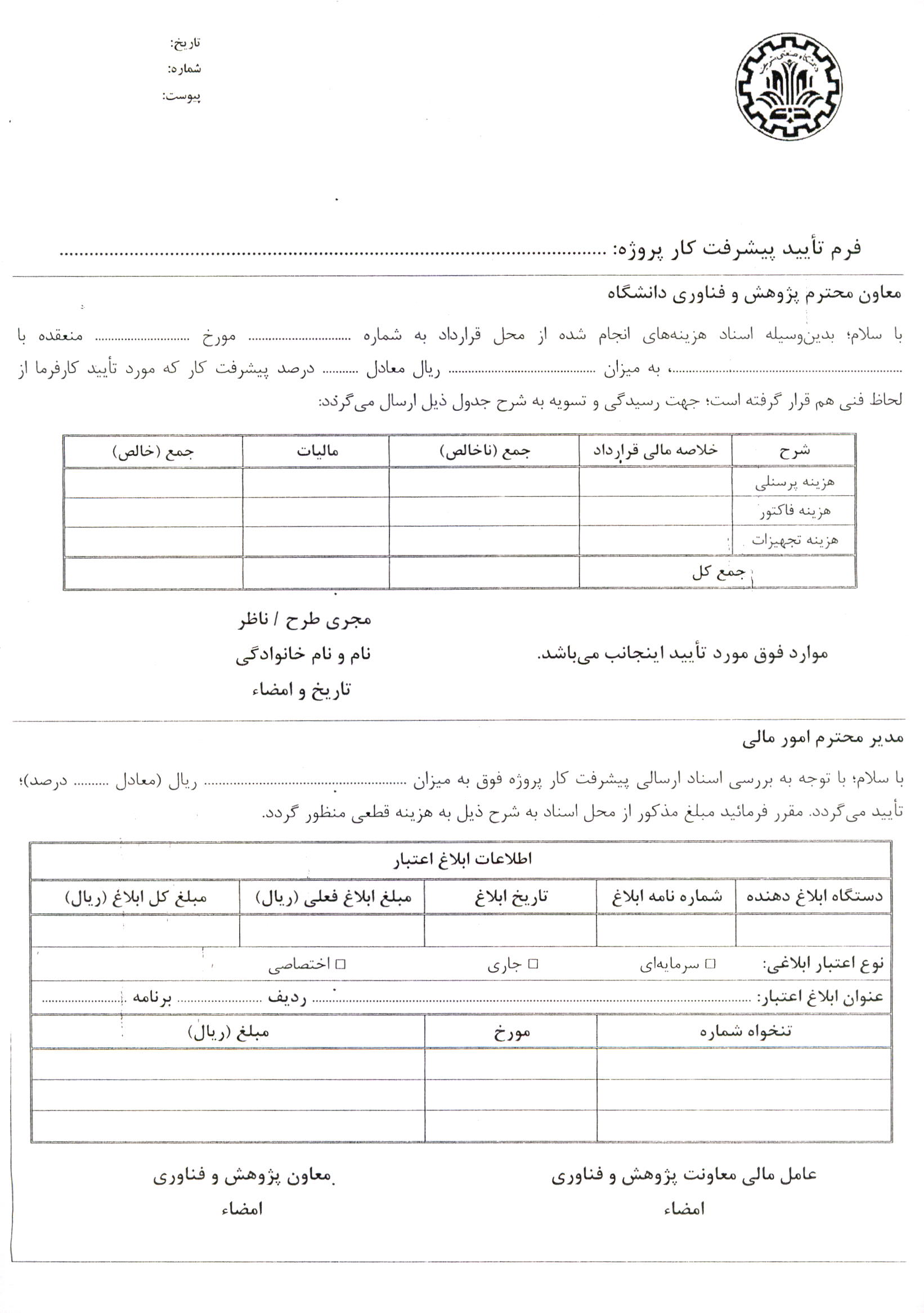 فرم تاييد پيشرفت كار پروژه