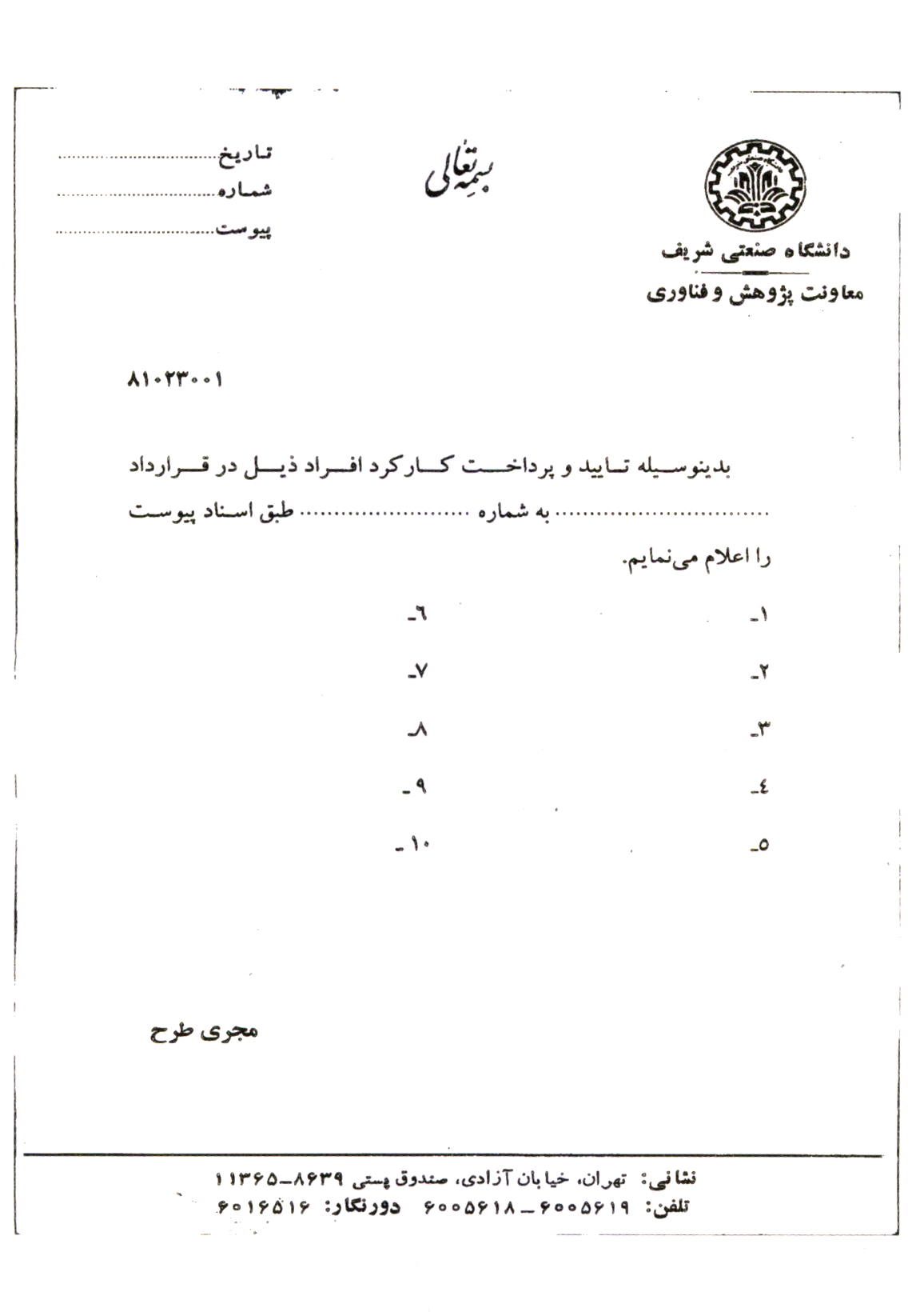 نامه معافیت مالیاتی دانشگاه شریف