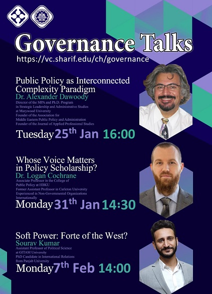 Governance Talks سلسله نشست های علمی گفتگوهای بینالمللی حکمرانی Governance Talks سلسله نشست های علمی گفتگوهای بینالمللی حکمرانی این نشستها با هدف گفتگوی علمی پیرامون جدیدترین مباحث حوزه...