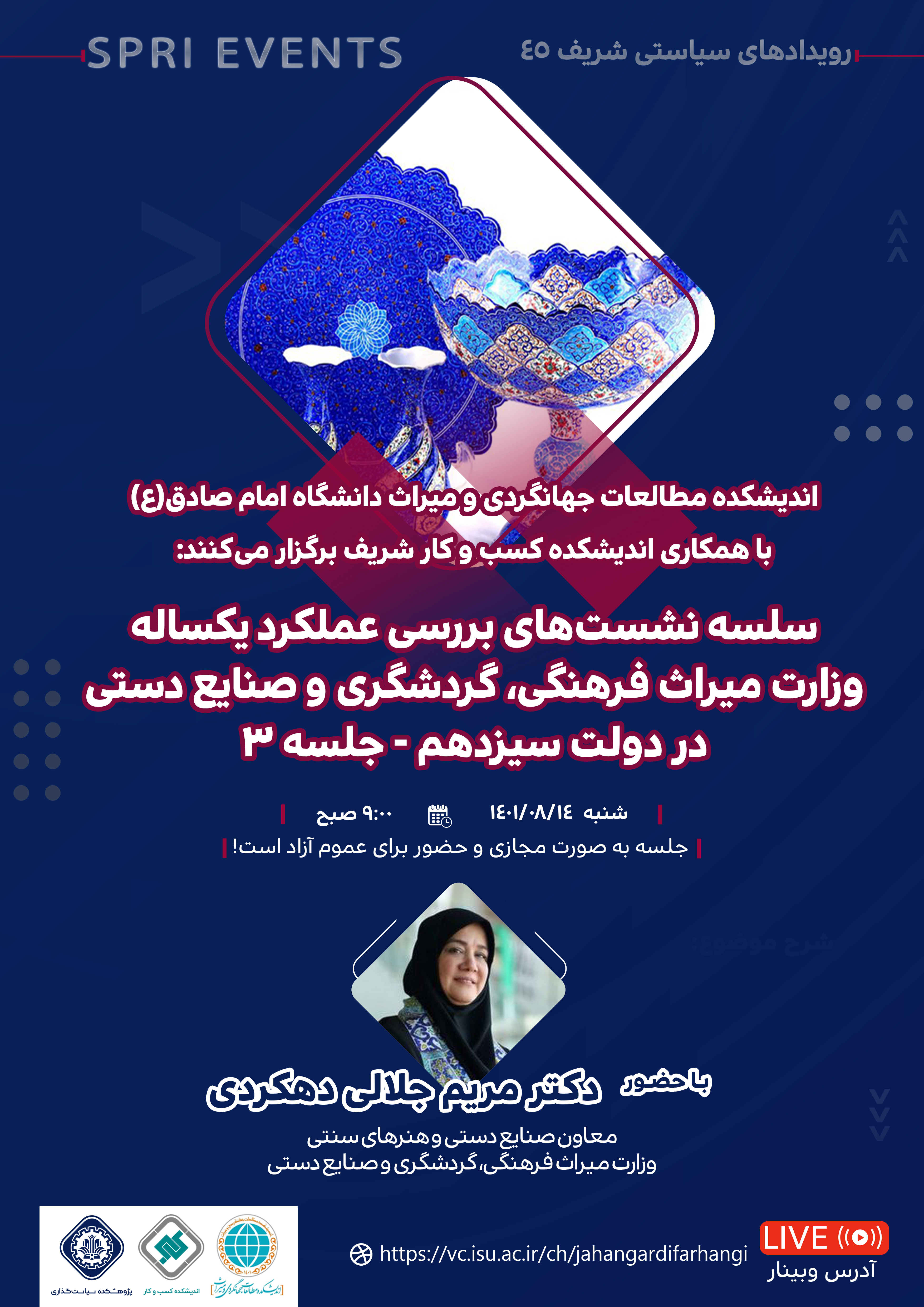 سلسله نشست های بررسي عملکرد یکساله وزارت میراث فرهنگی،گردشگری و صنایعدستی در دولت سیزدهم سلسله نشست های بررسي عملکرد یکساله وزارت میراث فرهنگی،گردشگری و صنایعدستی در دولت سیزدهم سلسله نشست های...